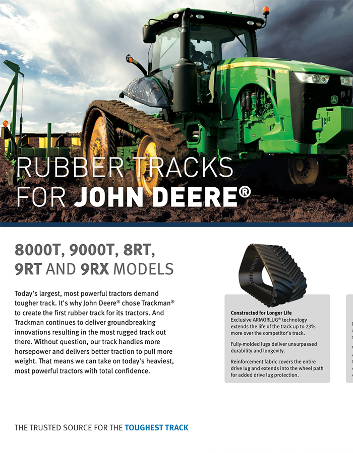 Trackman’s John Deere rubber tracks are designed from the inside out for maximum service life.